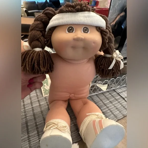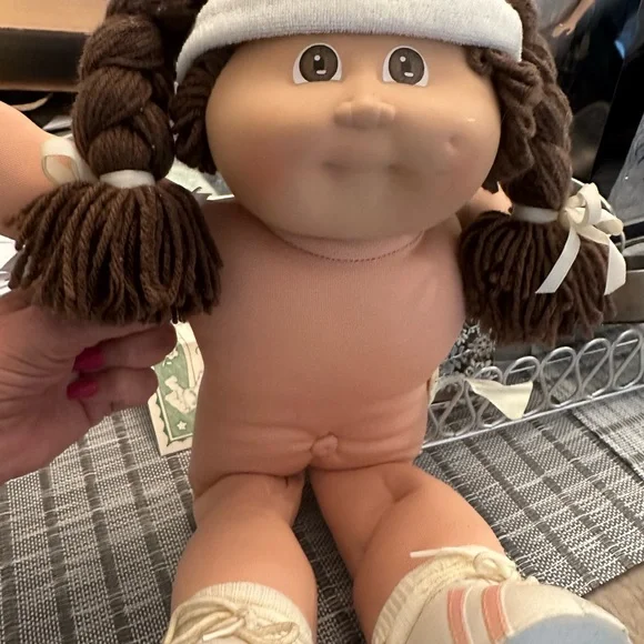 1978 1982 XAVIER ROBERTS CABBAGE PATCH DOLL Brown Hair Brown eyes by Coleco.. original clothes... missing diaper Have adoption papers