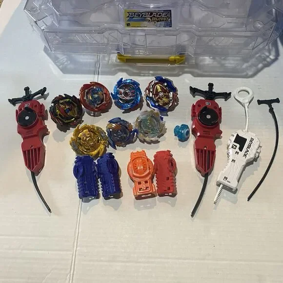 Pre owned! Please look at all photos! No original packaging or paperwork! As is! What you see in pics is what you get involving Beyblade! Please look at all photos!