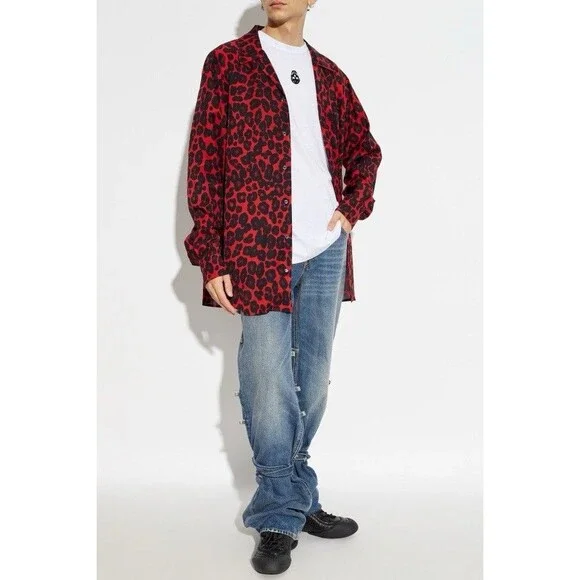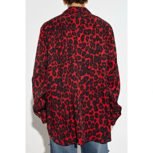 Introducing the Animal Print Shirt by the esteemed designer Alexander McQueen, a brand that masterfully marries contrasts, honoring history and art while epitomizing contemporary British tailoring.This exquisite shirt features a classic, relaxed fit with a collar, making it a versatile addition to any wardrobe. The bold red animal print, reminiscent of a leopard pattern, adorns the entire fabric, creating a striking visual appeal.Crafted from 100% viscose, the material is lightweight and breathable, ensuring comfort throughout the day. The shirt´s details include a full-length button closure and a subtle embroidered brand logo on the back, near the collar, adding a touch of sophistication.With its red-dominated color and casual style, this shirt is perfect for everyday, effortless style. The long sleeves are finished with cuffs, providing a refined look suitable for various occasions.Size 16+