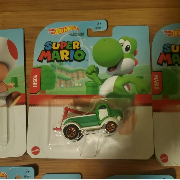 New in package set of 7 super mario hot wheels Vomes with all showncomplete setminor storage damage to some packaging