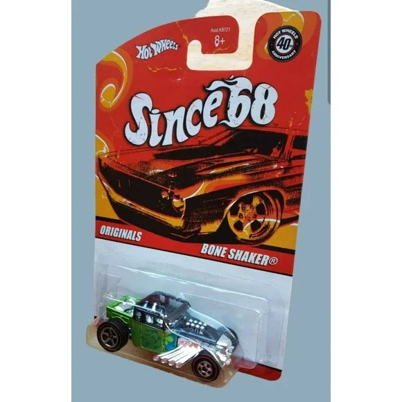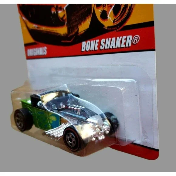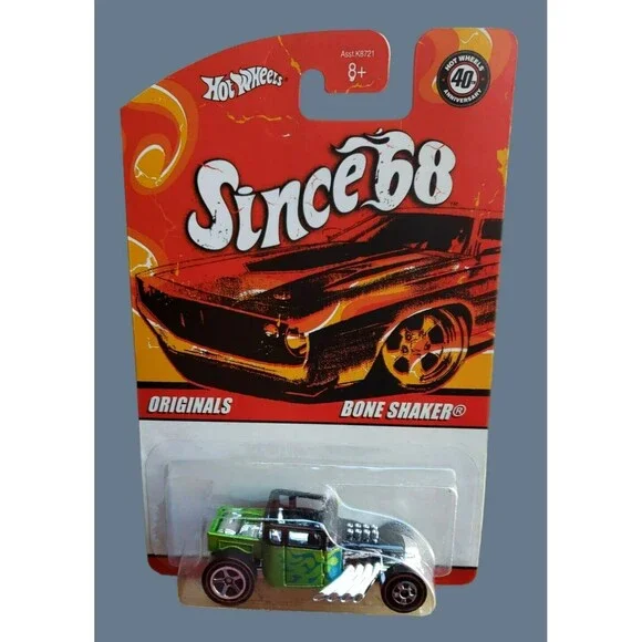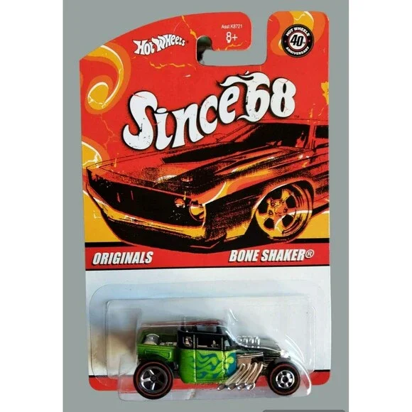 2008 Hot WheelsBONE SHAKERSINCE ´68: OriginalsMPN # K872108 OF 10Color: Lime Green & BlackBlue FlamesBase Color: Unpainted / Diecast Metal / ThailandChrome InteriorScale: 1:64MPN #: K8721Wheel Type:Back: Redline Chrome 5 SpokeFront: Redline Chrome Black WallHeavy Die-Cast MetalMOC / VHTFFactory SealedVintage CollectibleNot Battery-PoweredDear Valued Customer,We Expedite Great Fast ServiceHandling Time: Same Business Day ServiceAll Items Will Ship Same Day Monday through Friday.Cut Off Time For Same Day Handling: 4:00 PM Pacific TimeThe listings have a 3-4 business day shipping time-frame, depending on the buyers shipping zone.Please, closely review all the item information in the listing, and photos to see the physical condition of the item.Please, do ask if you need additional information regarding Item description, additional photos, Or any specifics.We are listing new items daily, please visit us again.Thank YouSG