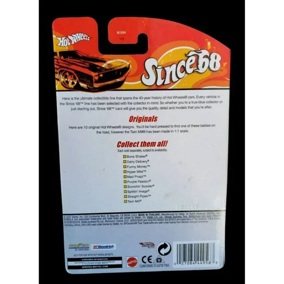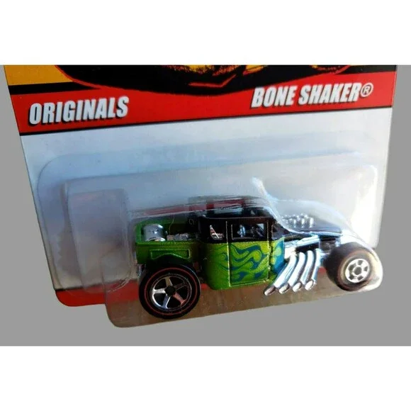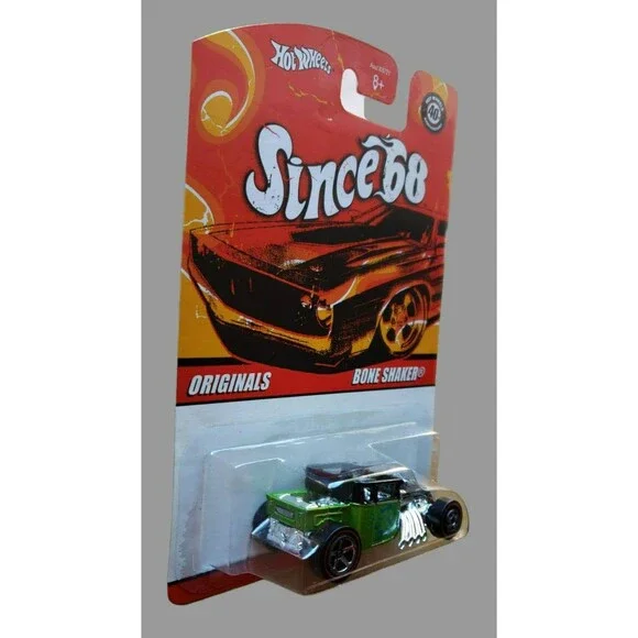 2008 Hot WheelsBONE SHAKERSINCE ´68: OriginalsMPN # K872108 OF 10Color: Lime Green & BlackBlue FlamesBase Color: Unpainted / Diecast Metal / ThailandChrome InteriorScale:...