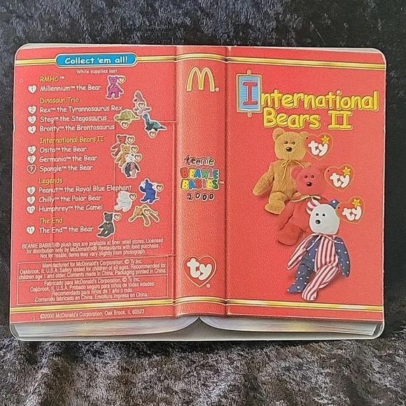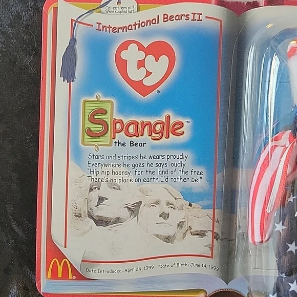 TY 2000 McDonald´s Teenie Beanie International Bears II Spangle the BearInternational Bears II Spangle the Bear #7Introduction Date: April 24, 1999Date of Birth: June 14, 1999New with tags. New in package.All offers welcomed. Bundle and save Same day shipping
