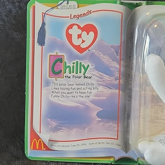 TY 2000 McDonald´s Teenie Beanie Legends Chilly the Polar BearLegends Chilly the Polar Bear#9Introduction Date: June 25, 1994Date of Birth: February 22, 1994New with tags....