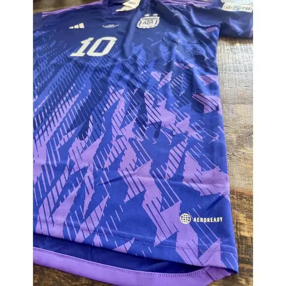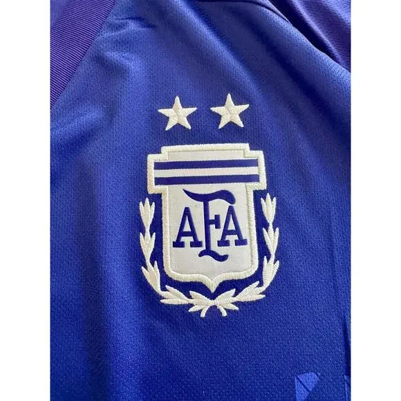 Relive one of the key moments of Argentina’s 2022 FIFA World Cup journey with this authentic Player Version jersey worn by Lionel Messi during the match against Poland.Messi #10 – Featuring official name and number from the Argentina vs Poland group stage match.Stadium Version – Comfortable fit.Qatar 2022 World Cup Patch – Includes tournament patch as worn during the game.Authentic AFA Details – Official Argentina Football Association badge and championship design.Condition: Brand New with Tags (BNWT)100% Authentic – Perfect for fans and collectors.This jersey commemorates Argentina’s journey toward World Cup glory – a great addition to any fan´s collection or gift for a Messi supporter.