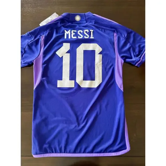 Relive one of the key moments of Argentina’s 2022 FIFA World Cup journey with this authentic Player Version jersey worn by Lionel Messi during the match against Poland.Messi #10 – Featuring official name and number from the Argentina vs Poland group stage match.Stadium Version – Comfortable fit.Qatar 2022 World Cup Patch – Includes tournament patch as worn during the game.Authentic AFA Details – Official Argentina Football Association badge and championship design.Condition: Brand New with Tags (BNWT)100% Authentic – Perfect for fans and collectors.This jersey commemorates Argentina’s journey toward World Cup glory – a great addition to any fan´s collection or gift for a Messi supporter.