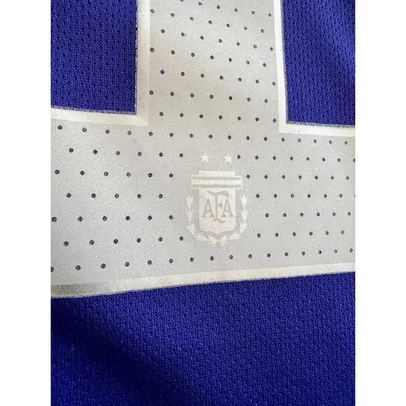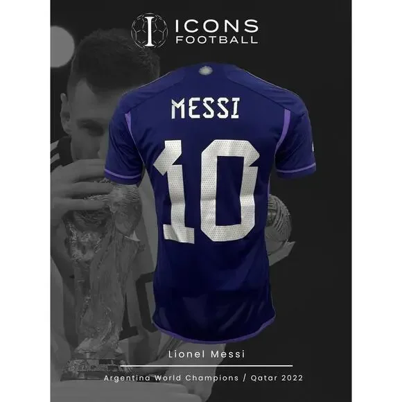 Relive one of the key moments of Argentina’s 2022 FIFA World Cup journey with this authentic Player Version jersey worn by Lionel Messi during the match against Poland.Messi #10 – Featuring official name and number from the Argentina vs Poland group stage match.Stadium Version – Comfortable fit.Qatar 2022 World Cup Patch – Includes tournament patch as worn during the game.Authentic AFA Details – Official Argentina Football Association badge and championship design.Condition: Brand New with Tags (BNWT)100% Authentic – Perfect for fans and collectors.This jersey commemorates Argentina’s journey toward World Cup glory – a great addition to any fan´s collection or gift for a Messi supporter.