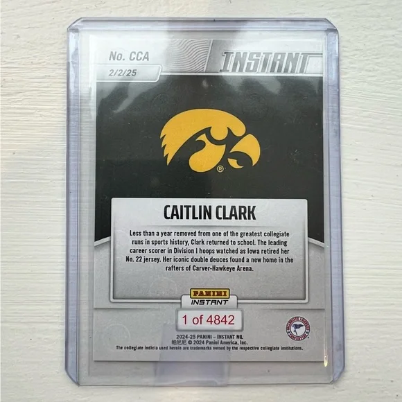 2024 Panini Instant NCAA - Caitlin Clark #CCA Iowa Retires No. 22 base card. Great addition to any collection!