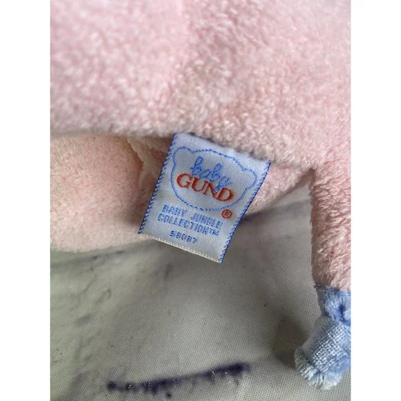 Up for grabs is a preowned Baby Gund Jungle Collection Pink Peach Elephant Plush Stuffed Animal Toy 58087 With Rattle. Will come exactly as shown! There are cosmetic discoloration...
