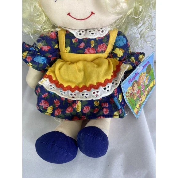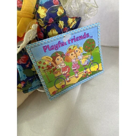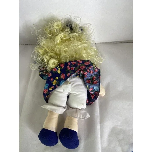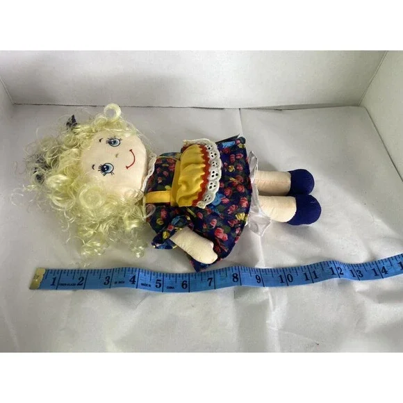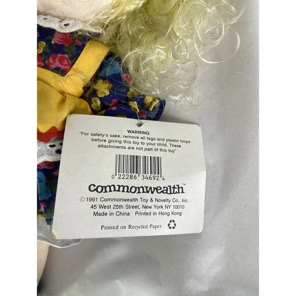 Up for grabs is a preowned Commonwealth Doll Playful Friends 1992 Curly Blond Hair Blue Floral Dress Vintage. Will come EXACTLY as shown! The original tag shows some wear! Her hair needs TLC! The dolls body has some discoloration! No holes or tears. SOLD AS IS! No other additional accessories or parts are included. Measurements laying flat are included in photos. Please refer to all photos. Ask any questions prior to purchasing! Thanks!