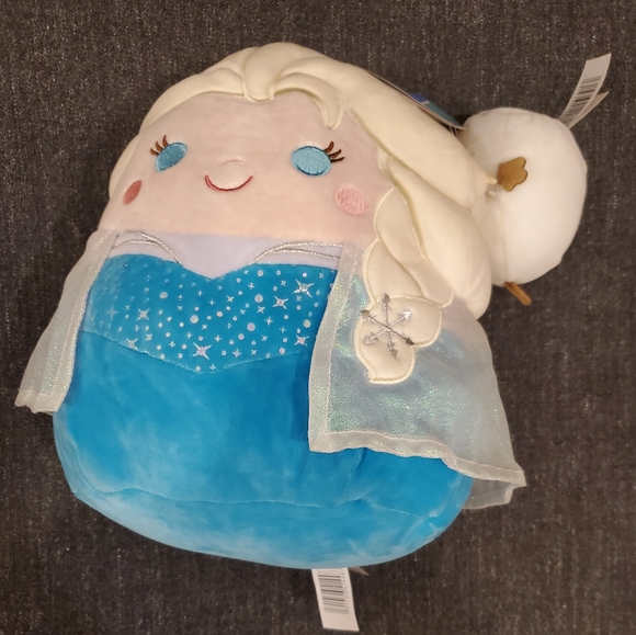 Get ready to snuggle with the Disney Squishmallows Disney Elsa and Olaf plush. Add this detailed and classic Elsa and Olaf to your Squishmallows collection. This Disney collectible is perfect for Frozen fans of all ages. The soft 10-inch Elsa and 3-inch Olaf plush is perfect to snuggle with during long car rides, sleepovers. This authentic Squishmallows plush is easily washable and dryable. Squad up with all your favorite Disney and Pixar characters including Mickey Mouse, Stitch, Mike Wazowski, and more! These loveable and squeezable Disney Squishmallows plush characters are the softest and cutest plush toys around, so you´ll never stop dreaming.