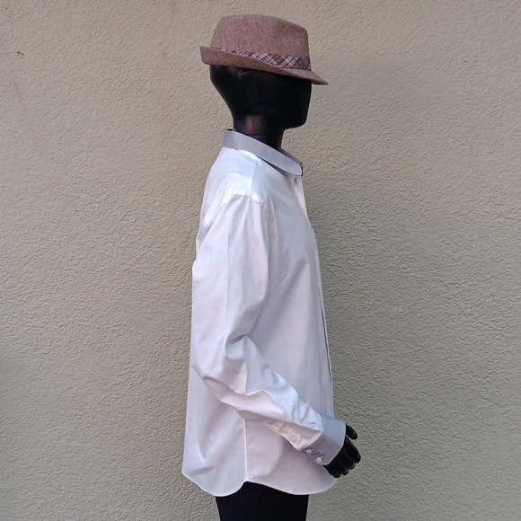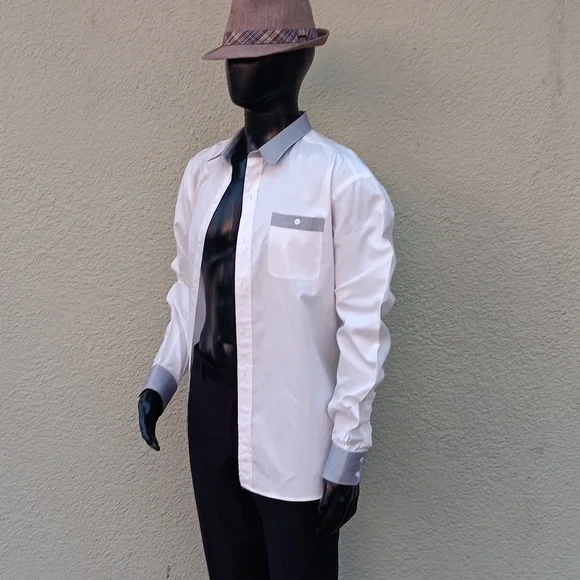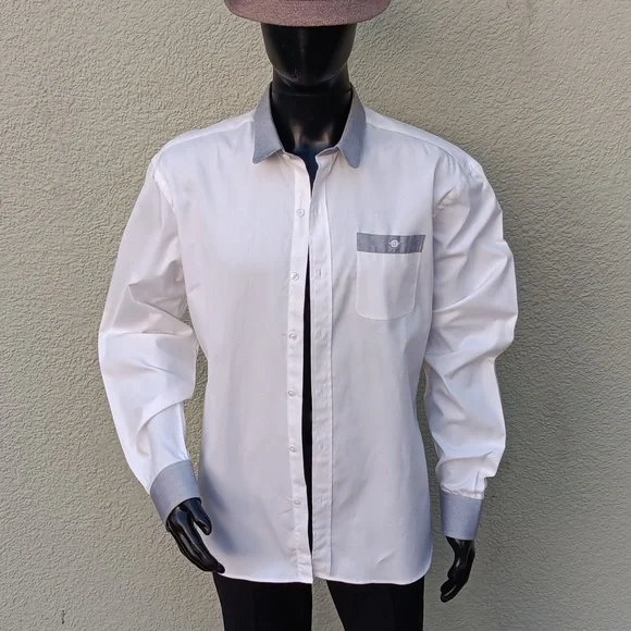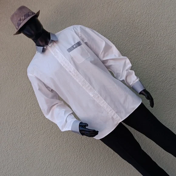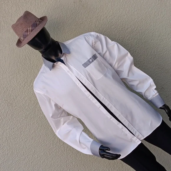 ROBERT JAMES NY MEN´SLUXURY WHITE SHIRT W/GREY CONTRASTING COLLAR/CUFFSTOP-SHELF LUXURY COTTON FABRICFULL CUT SHIRTNO FLAWS1VIDEO BELOW:Made In America Robert James, presented by If You Knew a film by Craig Teper 1COPY & PASTE VIDEO TO YOUR GOOGLE SEARCH BARhttps://youtu.be/ABTIFLB81LY?si=2_m_qb0OCIhDf2hMBy Robert James is a 15-year-old brand and work of Robert James.Robert is a New York Designer who focuses on timeless, handsome garments with a tough independent twist.By Robert, James has an illustrious history in NYC. downtown fashion. and music scenes.From his iconic brick-and-mortar retail locations, BRJ entertained & served locals, artists, musicians, and world travelers gaining an avid following of lovers of quality and style.BY Robert James’ clothes are ‘simple, honest & handsome’