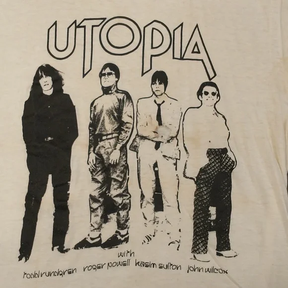 1976 Kasim Sulton joined Utopia, led by Todd Rundgren. Other two band members are Roger Powell & John Wilcox. Fun late seventies tee with th band members images as the main...
