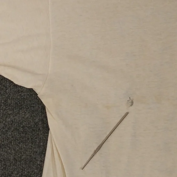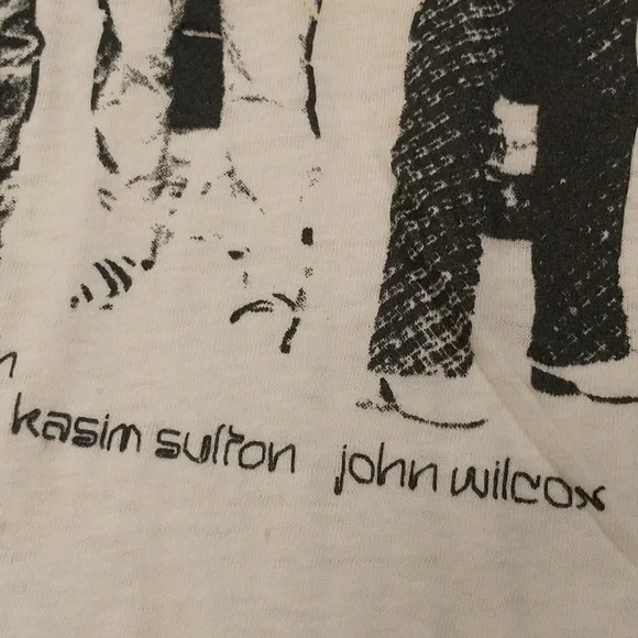 1976 Kasim Sulton joined Utopia, led by Todd Rundgren. Other two band members are Roger Powell & John Wilcox. Fun late seventies tee with th band members images as the main graphic. Black on a cream color 100% cotton t shirt. Has stains and two holes, please see photos. Size marked M, please go by measurements. Pit to pit 17", length 27". Single stitch. True authentic vintage, American music history. Unisex women´s or men´s. Rare find.