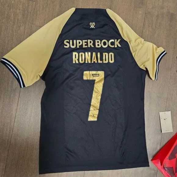 Official Sporting Club De Portugal 23/24 Nike 3rd Jersey Special Ronaldo CR7 comes with 3 patchesCondition is Newsize Mediumpurchased in Lisboncomes with Ronaldo mask and a bag