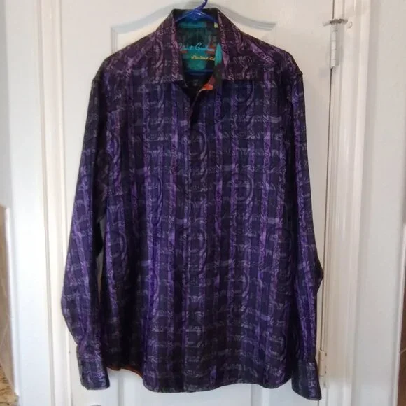 Robert Graham Mr. Big Limited Edition Silk Purple Paisley Shirt Size XLExcellent Preowned Condition539 out of 663 shirts100% silkNo FlawsClassic FitSee all photos for detailsSmoke Free HomeThanks for Shopping my Closet!