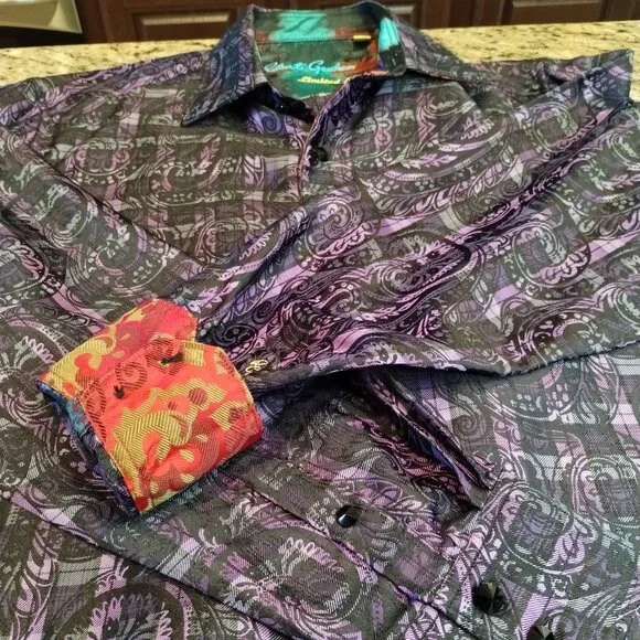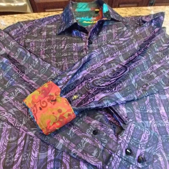 Robert Graham Mr. Big Limited Edition Silk Purple Paisley Shirt Size XLExcellent Preowned Condition539 out of 663 shirts100% silkNo FlawsClassic FitSee all photos for detailsSmoke...