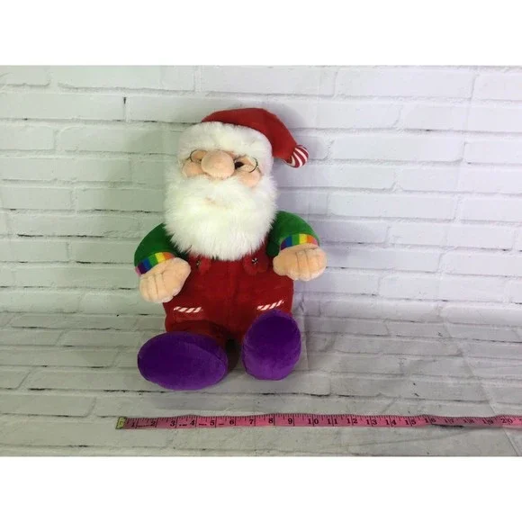 Up for grabs is a preowned Sugar Plum Junction Santa Claus With Rainbow Sleeve Ends And Glasses Stuffed Plush Doll by Commonwealth Toy Novelty Co. RARE and hard to find! Will come EXACTLY as shown! Clean overall. No holes or tears. Measurements Laying flat are included in photos, PLEASE compare them to your own for proper fit! Please refer to all photos. Ask any questions prior to purchasing. Thanks!