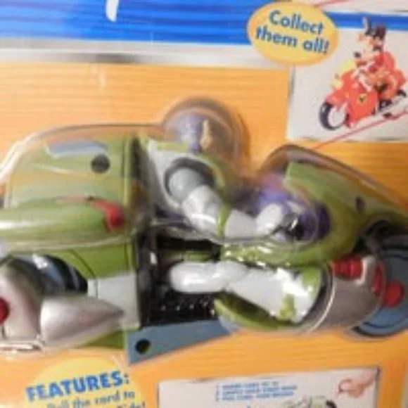 Buzz Lightyear Toy Story Disney Stylin´ Street Rider Motorcycle Pull Toy. Rare hard to find toy. Brand new in factory sealed package.The plastic packaging has some shelf...