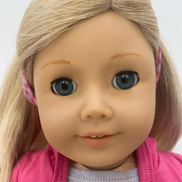 American Girl Just like you doll from 2008. Now retired. Blonde layered hair, blue eyes and feathered eyebrows. Comes with star hoodie meet outfit. Very good overall condition. Small mark on back of leg and some wear on shoes. See pictures.