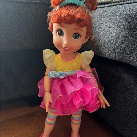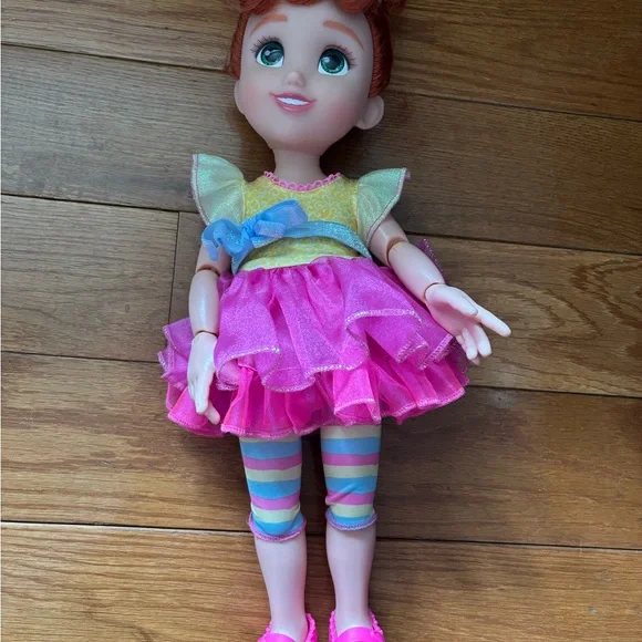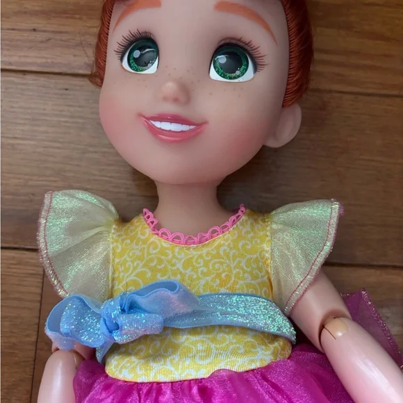 This enchanting Disney doll features a whimsical pink ruffled dress with yellow cap sleeves, perfect for imaginative play. Her bright blue eyes and auburn hair add to her...