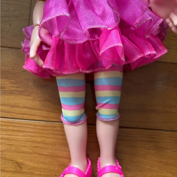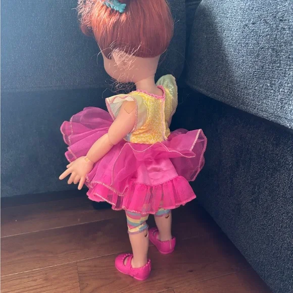 This enchanting Disney doll features a whimsical pink ruffled dress with yellow cap sleeves, perfect for imaginative play. Her bright blue eyes and auburn hair add to her fairy-tale charm, making her a delightful addition to any toy collection.Great condition, comes from smoke free home.