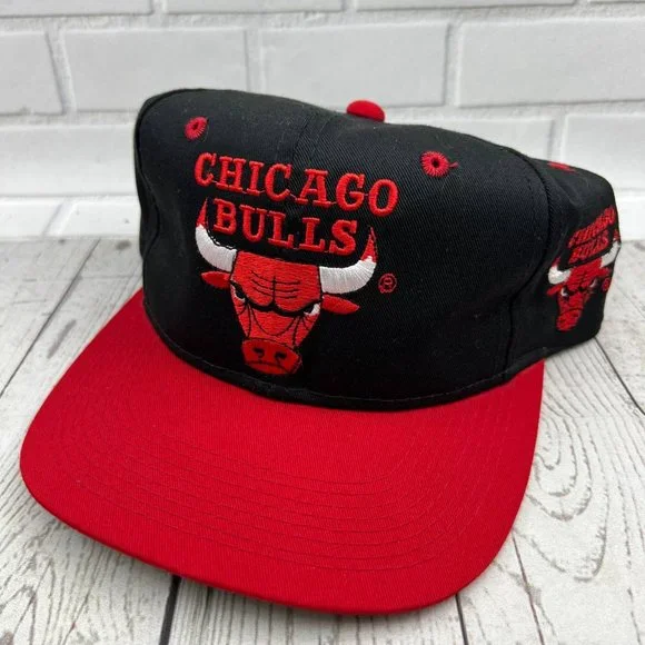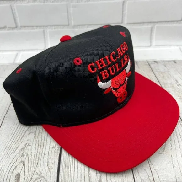 Vintage Chicago Bulls NBA Blockhead Youngan Hat Snap back Cap Black Red Men