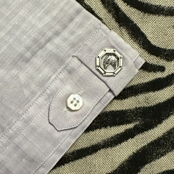 Stefano Ricci hand stitched linen button up. Missing decorative button on right sleeve, other than that it is in excellent condition. Size medium.