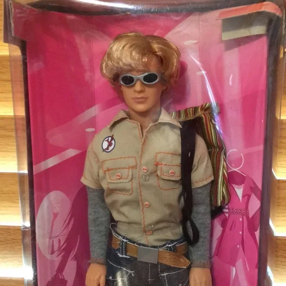 Rare 2007 Barbie Fashion Fever Ken doll with rooted hair, sunglasses, backpack. New in box. Box is a bit damaged.