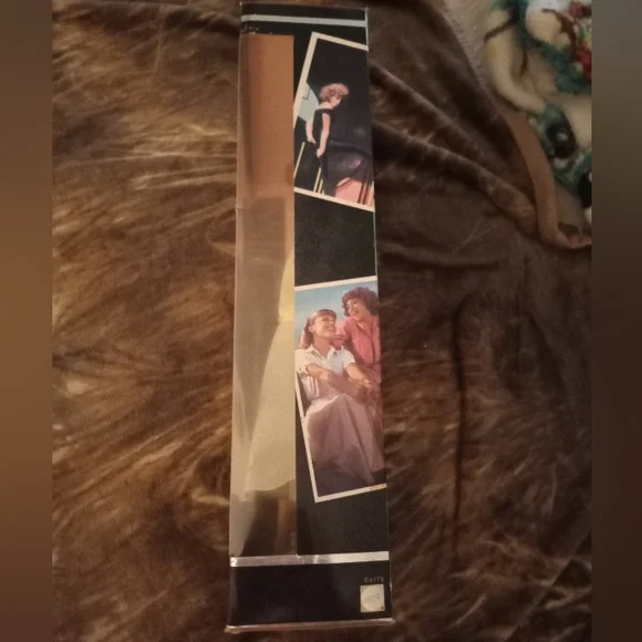 Barbie doll again draws inspiration from a very favorite movie and portrays the character Sandy Olsson from Grease. She wears a wonderful re-creation of the outfit in which we first see Sandy at Rydell High. Delightfully charming, Sandy wears a white blouse and cheerful yellow cardigan. The matching yellow skirt brings an authentic Fifties Flare. Wide white belt, shoes, and kicky hair ornaments complete the ensemble.Front of box is ripped open on one side. Some wear on the bottom. Shown in pics.