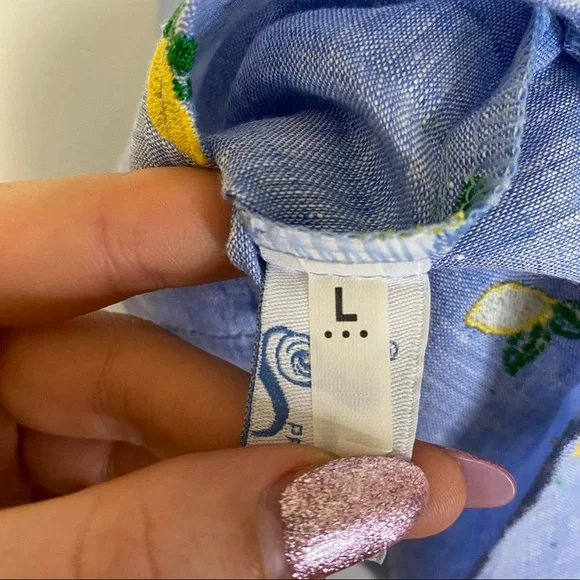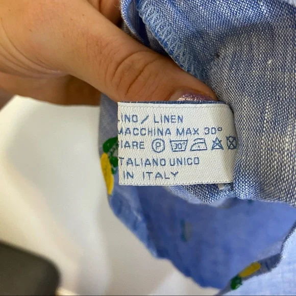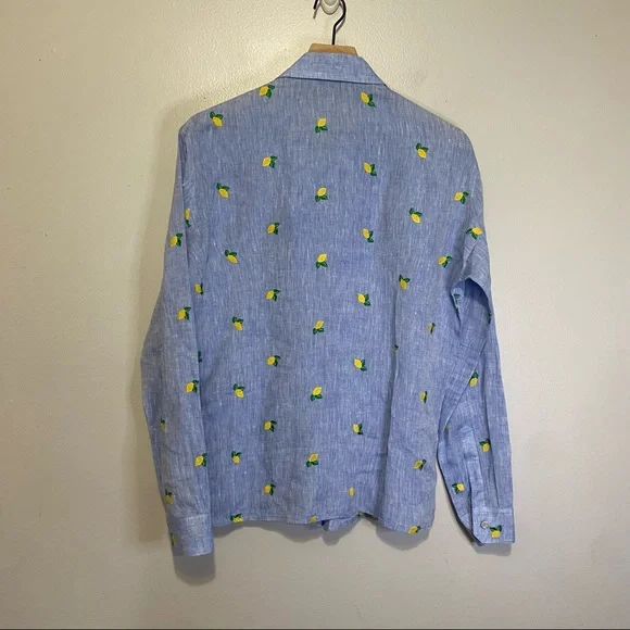 Idillio Positano Embroidered Lemon Long Sleeve Linen Button Up Shirt Men´s Large
