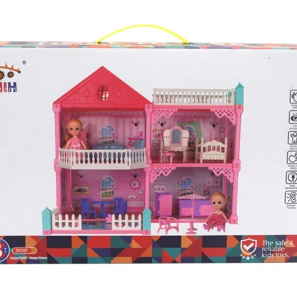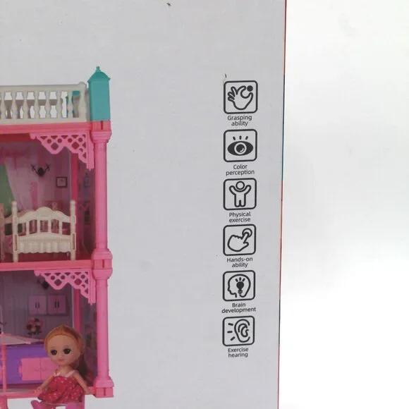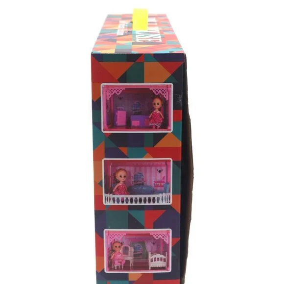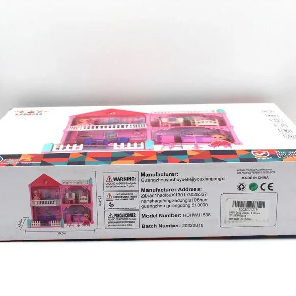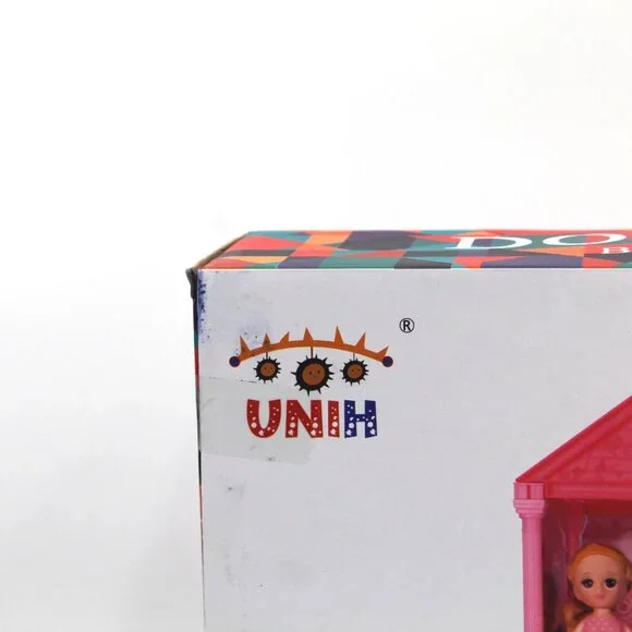 UNIH Two Story 4 Compartment Doll House Detachable With Accessories Open Box