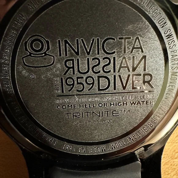 NWT Invicta Russian Pro Diver Model Watch Gen 1-Like New Still in Original Box with Manual*Case-51.5mm ,Stainless Steel*Band-Stainless Steel, Polyurethane*Movement-Swiss Quartz*Water resistance-100M*Tritnite-Nite Glow