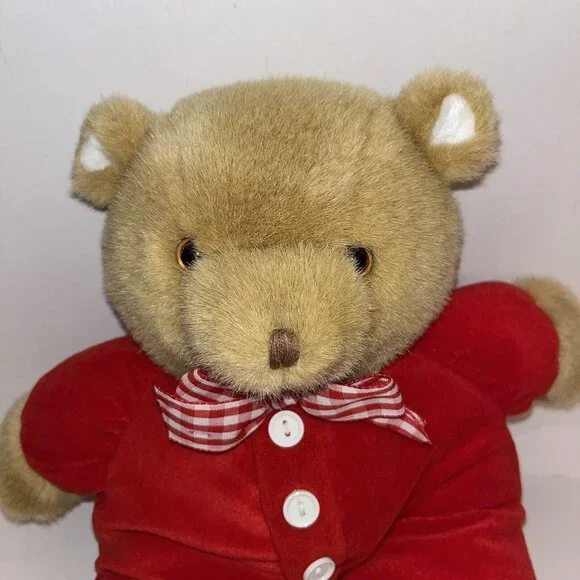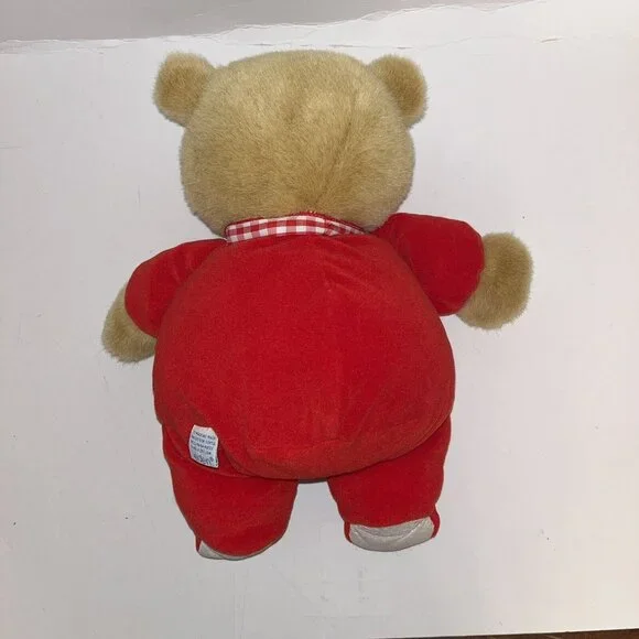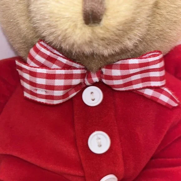 Vintage Eden Red Teddy Bear Lovey Plush Stuffed Animal Gingham Red Checkered Bow