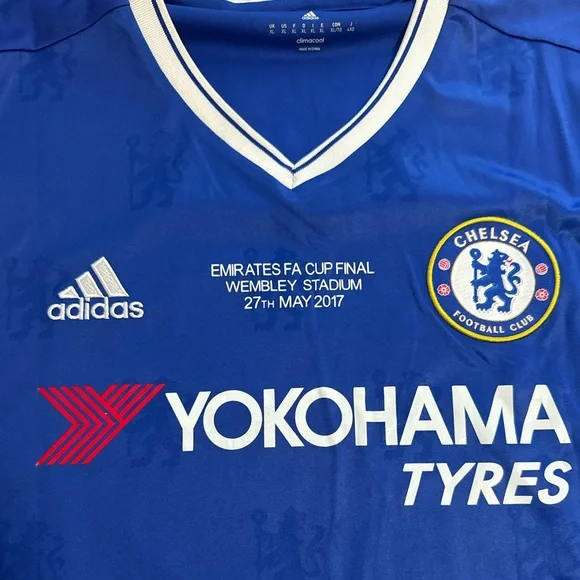 Up for sale is a Eden Hazard Chelsea FC Jersey Adidas 2016/17 FA Cup Final Men’s Size XL AI7182Condition of the jersey is used. Please inspect all photos as it shows the true condition of the jersey!Jersey comes equipped with a heat pressed Hazard name and number set. Along with this are 2 FA Cup patches and the final match details!