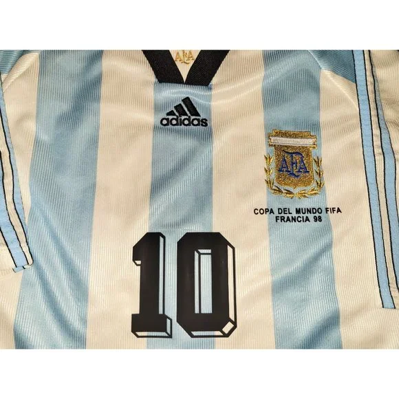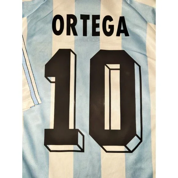 Official Ariel "El Burrito" Ortega Argentina Home Jersey from the 1998 World Cup. IT IS FROM THE ERA! NOT A REMAKE! PLEASE READ!!!!The SIZE IS XL! It is in VERY GOOD CONDITION! I would give it a 8.5/10 in overall condition.River Plate Argentina Valencia Newell´s Old Boys Sampdoria Football Shirt