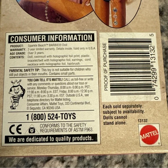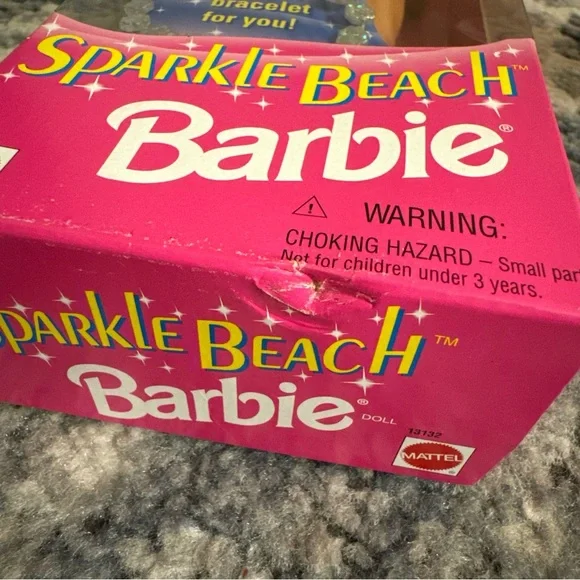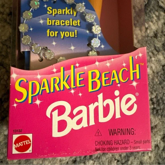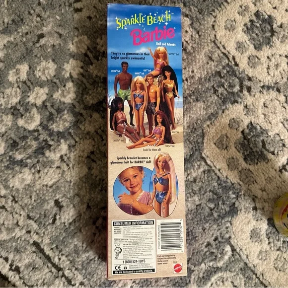 Vintage Sparkle Beach Barbie 1995 blonde twisted long hair blue bikini NEW