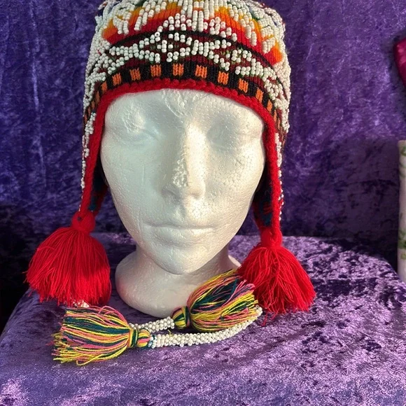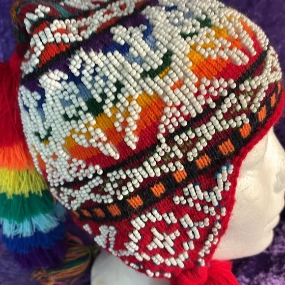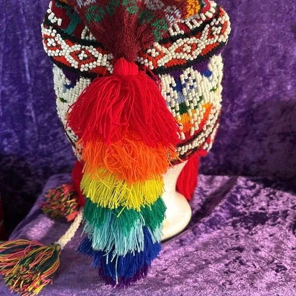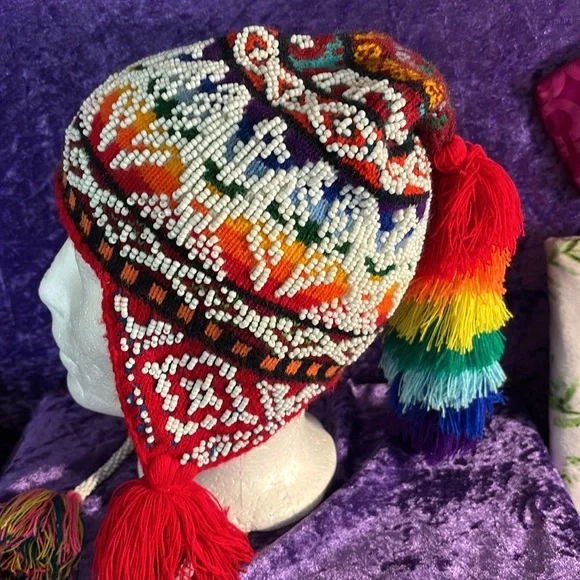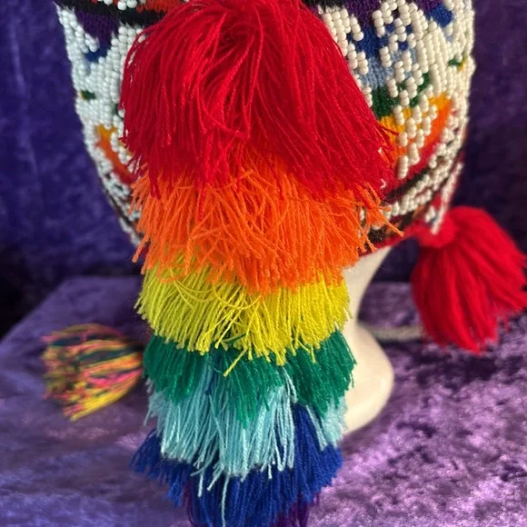 Peruvian Chullo Ceremonial Shaman Beaded with Tassels