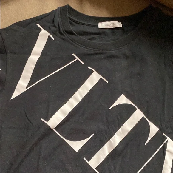 Elevate your casual style with this black VLTN graphic t-shirt. Perfect for everyday wear, it combines comfort with a bold design.it cant fit until size medium slim