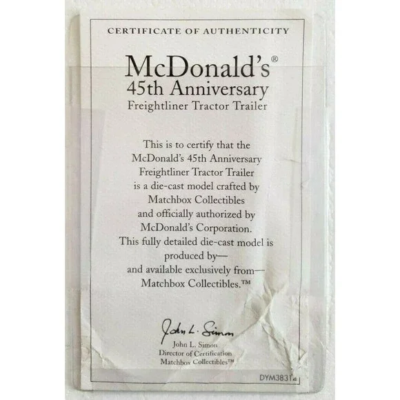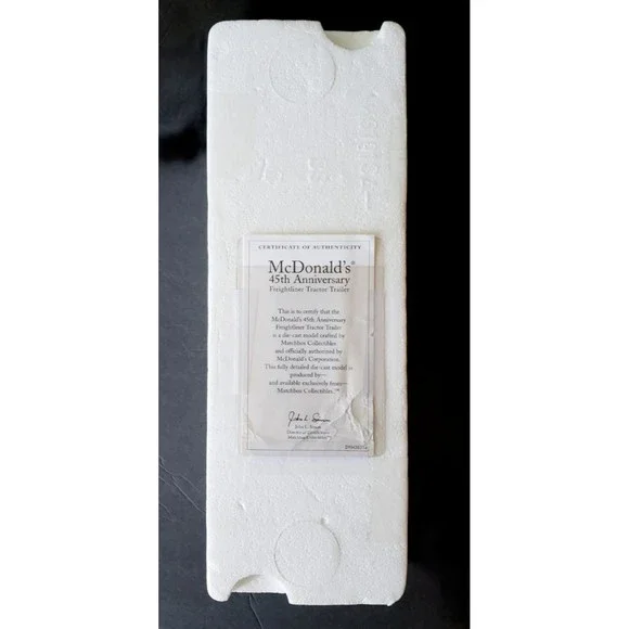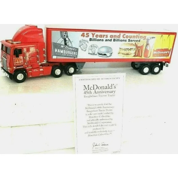 1997 Matchbox McDonald´s Diecast Tractor Trailer 45th Anniversary Scale: 1:58 With Original Inside styrofoam packaging. Outer box not included. Cars Are Not Battery-Powered...