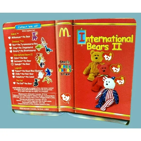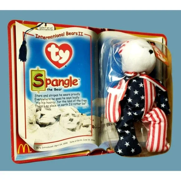 McDonald´s SPANGLE The Bear Collector #7 TY International Bears IITeenie Beanie BabiesDate Introduced: April 24, 1999Date Of Birth: June 6, 1999 Retired Plush ToyRare / HTF Dear Valued Customer, We Expedite Great Fast Service Handling Time: Same Business Day Service All Items Will Ship Same Day Monday through Friday. Cut Off Time For Same Day Handling: 4:00 PM Pacific Time. The listings have a 3-4 business day shipping time-frame, depending on the buyers shipping zone. Signature confirmation, And Declared Value Insurance services will be required on invoices over $300. Please, carefully review all the item information in the listing, and photos to see the physical condition of the item. Please, do ask if you need additional information regarding Item description, additional photos, Or any specifics. We are listing new items daily, please visit us again. Thank You