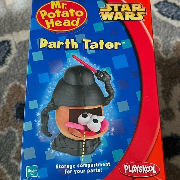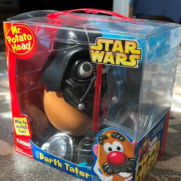 Dive into a galaxy of fun with the Darth Tater action figure, a unique blend of Star Wars and classic play. This toy features a black helmet and mask, capturing the essence of the...
