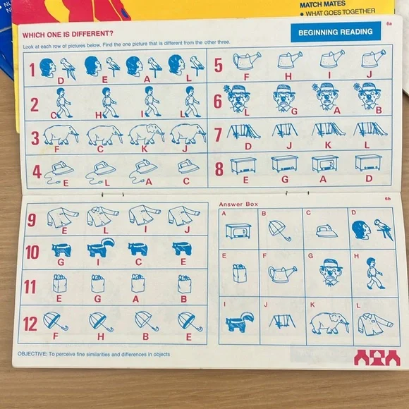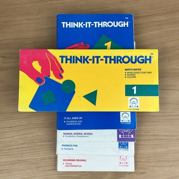 Discovery Toys - Think-It-Through Tiles. Has 17 books plus 1 sample book, ranging in subjects ´Match Mates´, ´It All Adds Up´, ´Words, Words, Words´, ´Phonics Fun´, ´Beginning Reading". All for 5+ years with ´Words, Words, Words´ for 8 years. Activities of matching the question with corresponding pictures on the answer pictures, when done, flip the tiles in the tile box and check out the shape it creates to match & see if you have the answers correct. Wonderful educational teaching aid. Some slight wear on book edges but VGUC.Weight 2.6 lbs