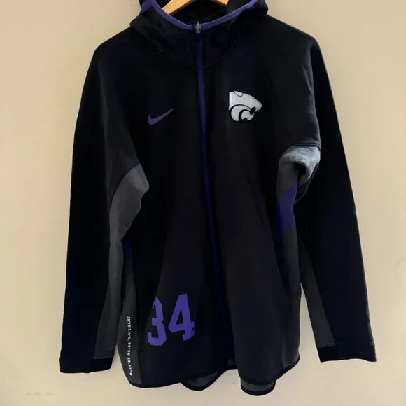 Nike K-State Wildcats Basketball Team Issue PE Travel Hoodie Mens L RARE NEW