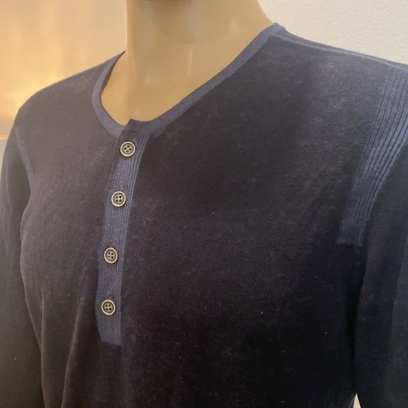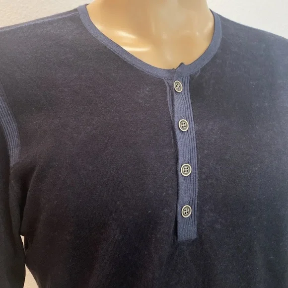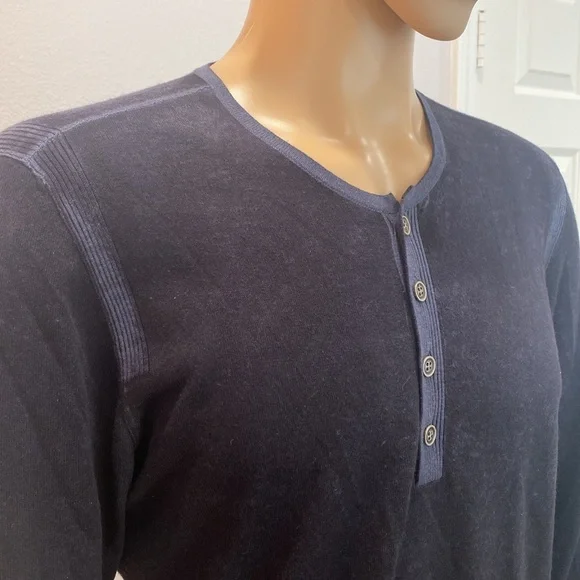 John Varvatos Mens Silk/Cashmere Dark Blue Crewneck Button Long Sleeve Shirt in Size M•In good condition •Crewneck•Long sleeves•70% silk, 30% cashmere•Made in China•Extra button included