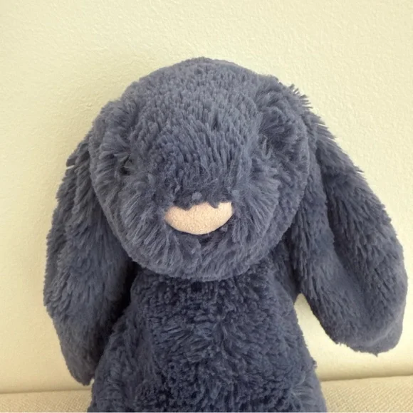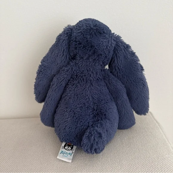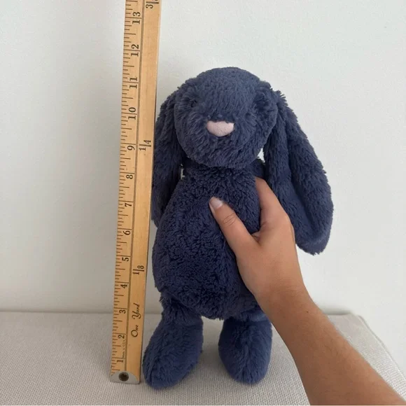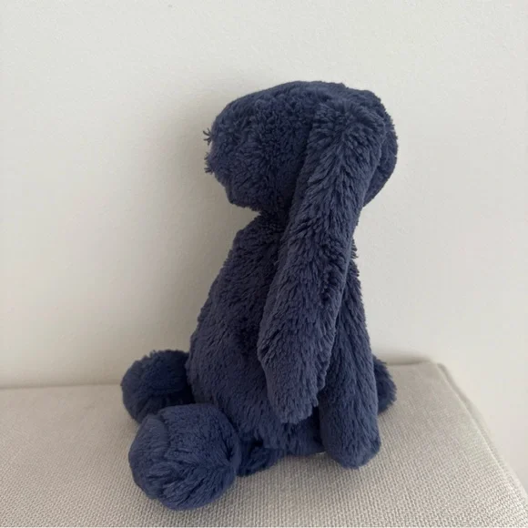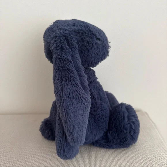 The Bashful Navy Blue Bunny is a small plush toy that belongs to the brand. It is suitable for various age levels, including infants, young children, and even teens and adults. This retired edition is perfect for those looking for a cute and cuddly addition to their collection or as a gift for someone special. The navy blue color adds a touch of elegance to this adorable bunny, making it a timeless and charming choice for any occasion.please review photos for closer detailscomes exactly as shownnice pre owned and pre loved conditioncomes with bag