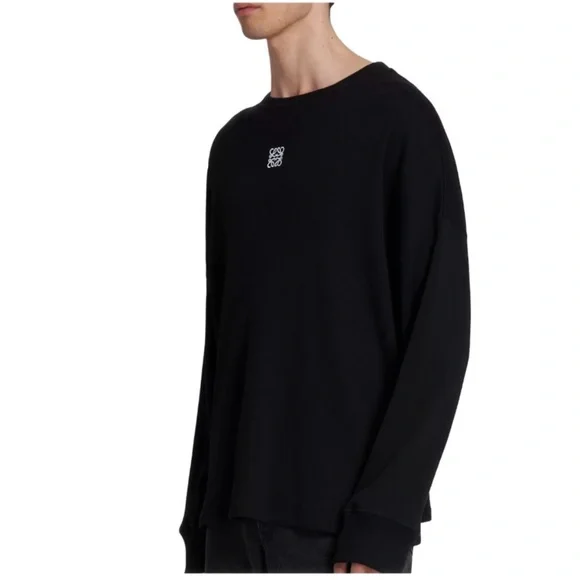 Authentic!Brand new condition with tags.DetailsWoven of a cotton blend, this rib-knit long-sleeved T-shirt is embroidered with LOEWE´s Anagram logo on the chest.• Crewneck• Long sleeves• Rib-knit cuffs• Pulls over• 95% cotton/ 5% polyester• Dry clean• Made in PortugalSIZE & FIT• Model measurements: 6´2" tall, 40" chest, 31" waist• Model is wearing a US size MediumMeasurementsLength:28.5´ Chest: 46´