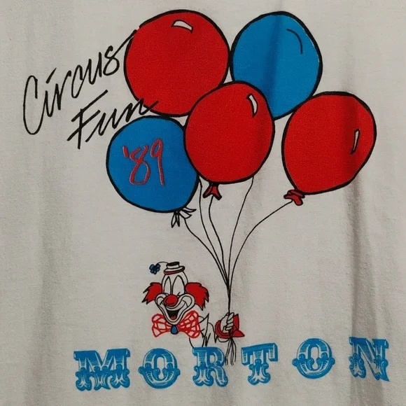 RARE! Screen Stars Vintage Morton Circus Fun 1989 shirt!! Has a creepy clown holding balloons, Lol!! This shirt is great and I´m unable to locate any others like this! Grab...
