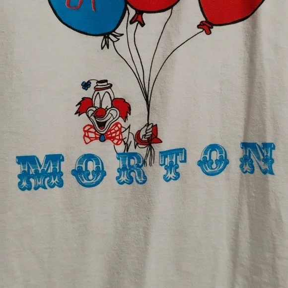 RARE! Screen Stars Vintage Morton Circus Fun 1989 shirt!! Has a creepy clown holding balloons, Lol!! This shirt is great and I´m unable to locate any others like this! Grab this Collectible while you can! Measurements Laying Flat:Pit to pit: 18".Length: 25 1/2".Smoke and pet free home! Reasonable offers always welcome!