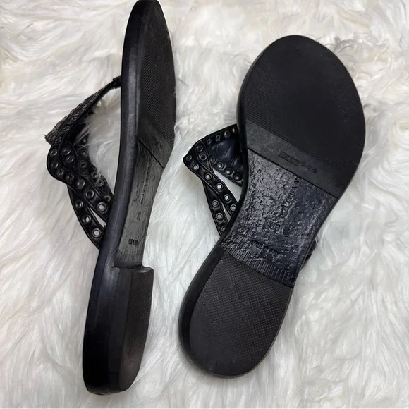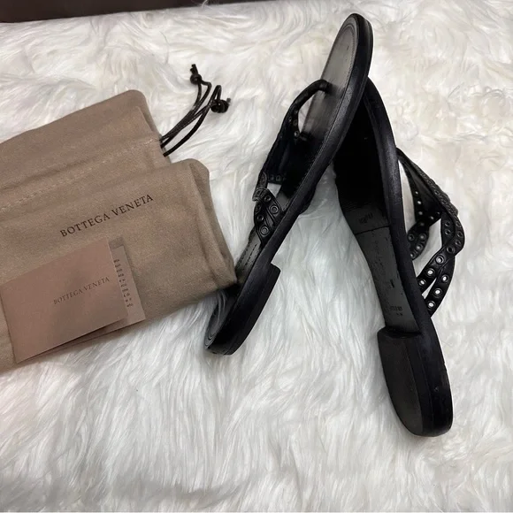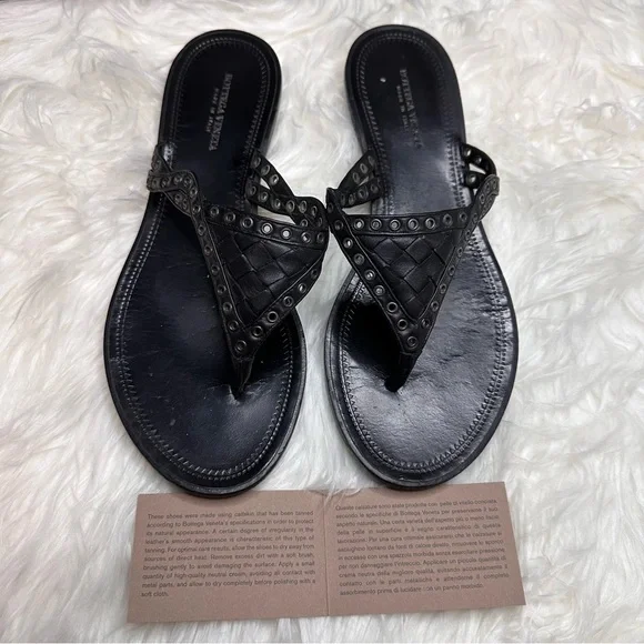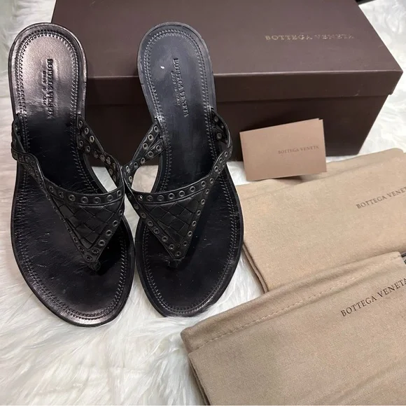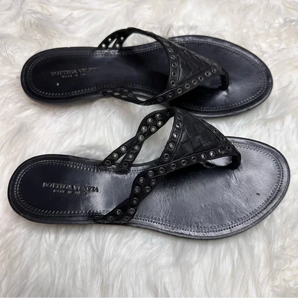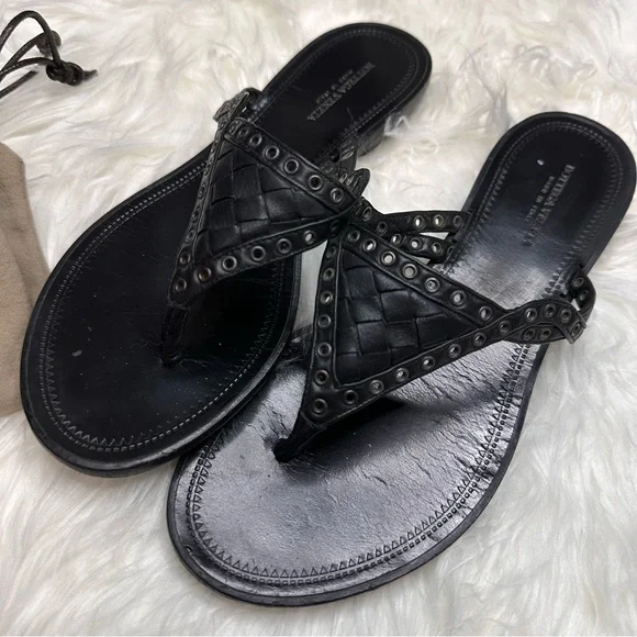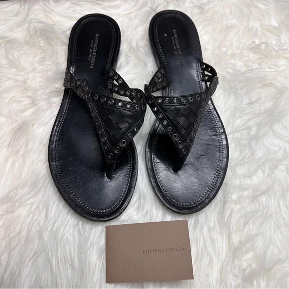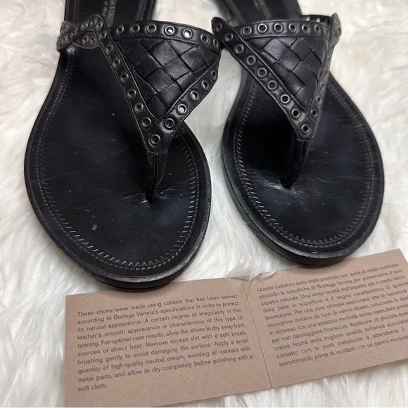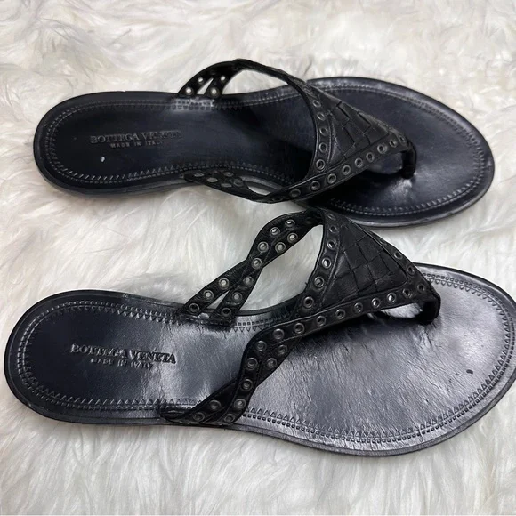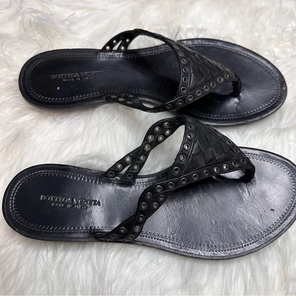 EUC BOTTEGA VENETA BLACK LEATHER WOVEN THONG SANDALMade in Italy With box and dust bagsSize 36